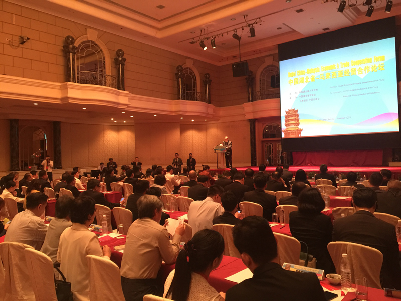 此次论坛由湖北省贸促会与马来西亚-中国总商会联合承办。吉隆坡当地80余位政府及工商界人士到会,与来自湖北省农业、轻工业、高新能源、机械设备制造、建材及不动产开发等领域的企业家们进行了合作洽谈和项目对接。在论坛上,湖北省贸促会还与马来西亚-中国总商会签订了友好合作协议,并正式成立了中国湖北省国际商会马来西亚分会。论坛取得圆满成功。