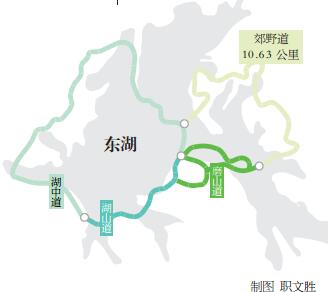 根据规划,东湖绿道全程分为湖中道、湖山道、磨山道、郊野道4段主题绿道。其中,郊野道10.63公里,含新建部分7.3公里。作为东湖绿道的重要一环,这里自然、生态、野趣。