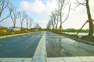 据介绍,东湖绿道全线沥青分为两层,下层为8厘米普通沥青,上层为4厘米高粘高弹沥青。待各项指标检测合格后,再展开大面积摊铺。