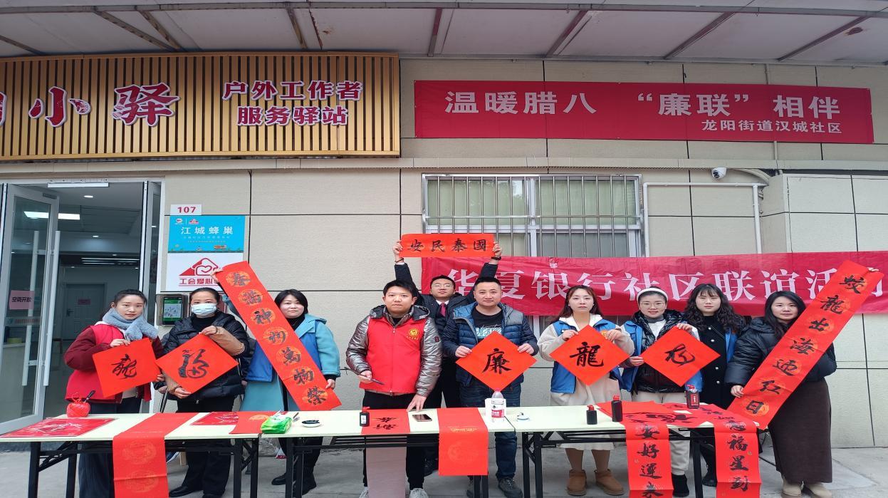 “过了腊八就是年”,腊八节是中华民族最古老的节日之一,历史非常悠久,曾是中国“廉政节”和“爱民节”。1月12日上午,汉城社区携手龙阳街道残疾人阳光家园及辖区共建单位华夏银行、刘胖子家常菜馆在社区阳小驿举办了一场为“温暖腊八,廉联相伴”的主题活动。此次活动旨在让辖区居民,特别是那些在严寒中坚守岗位的保洁员和快递小哥们感受到温暖和关怀,同时进一步弘扬清廉过节的理念,营造一个和谐、廉洁的社区氛围。