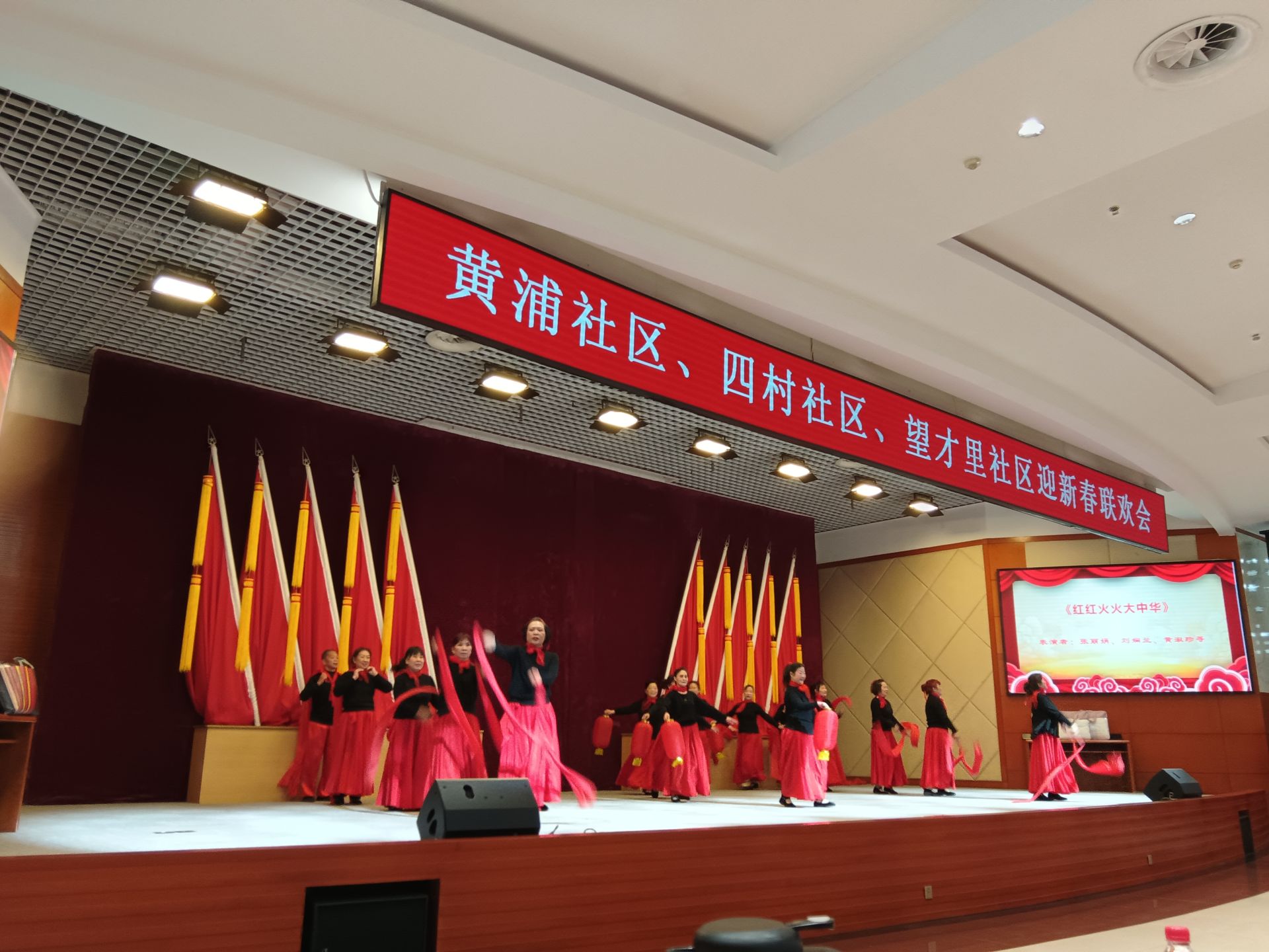 辞旧迎新,新春将至。为增进辖区居民“邻里情”,增强邻里社区之间的凝聚力,推动邻里社区居民之间的文化沟通、交流,营造团结奋进、文明和谐、喜庆祥和的节日氛围,展示各社区居民蓬勃向上的精神风貌。2024年1月17日下午,武汉市江岸区花桥街道望才里社区党委、黄浦社区党委、四村社区党委联动共筑,一同开展“我们的节日.春节”迎新联欢汇演活动,各社区以多样的文化节目表演与辖区居民群众欢聚一堂,共迎新年的到来。