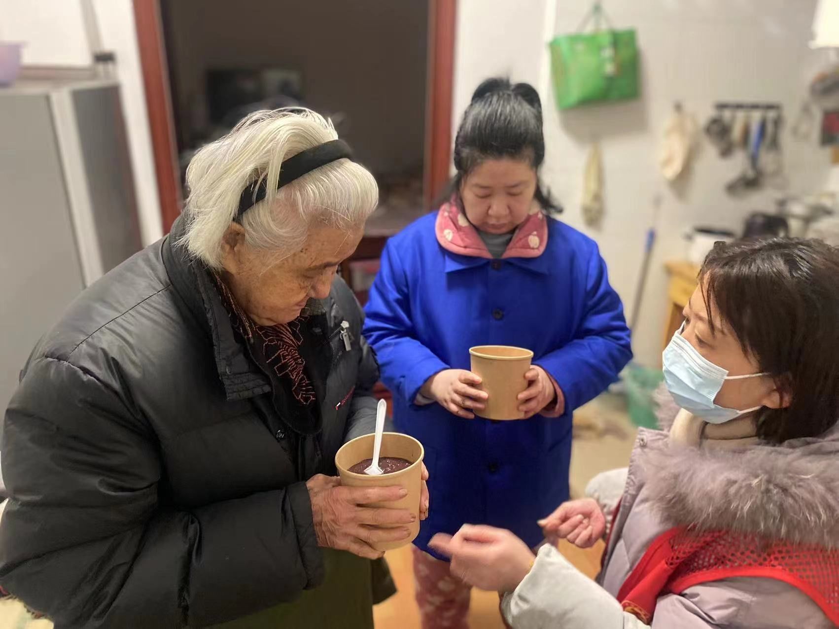 活动最后,社区工作人员和志愿者们将热腾腾的腊八粥送到辖区空巢独居老人家中,并提前向他们拜年祝福他们身体健康,长命百岁。一位老人表示:“这暖暖的腊八粥,真的是甜在嘴里,暖在心里,感谢社区举办的活动,让我们在这寒冷的冬季感受到欢乐的节日氛围。”