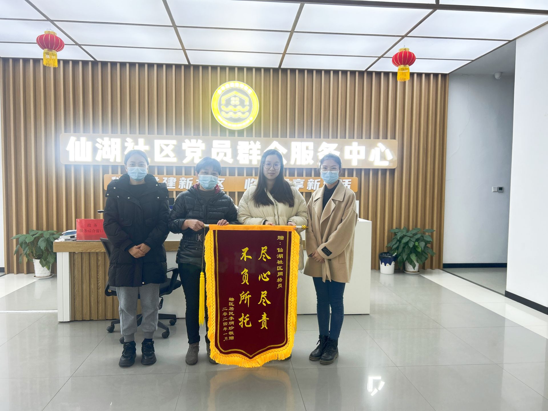 近日,武汉市汉阳区永丰街仙湖社区戈一村居民李婆婆委托自己的女儿将一面锦旗送到社区网格长手里,以此表达对社区工作人员不负所托,尽职尽责的感激之情。