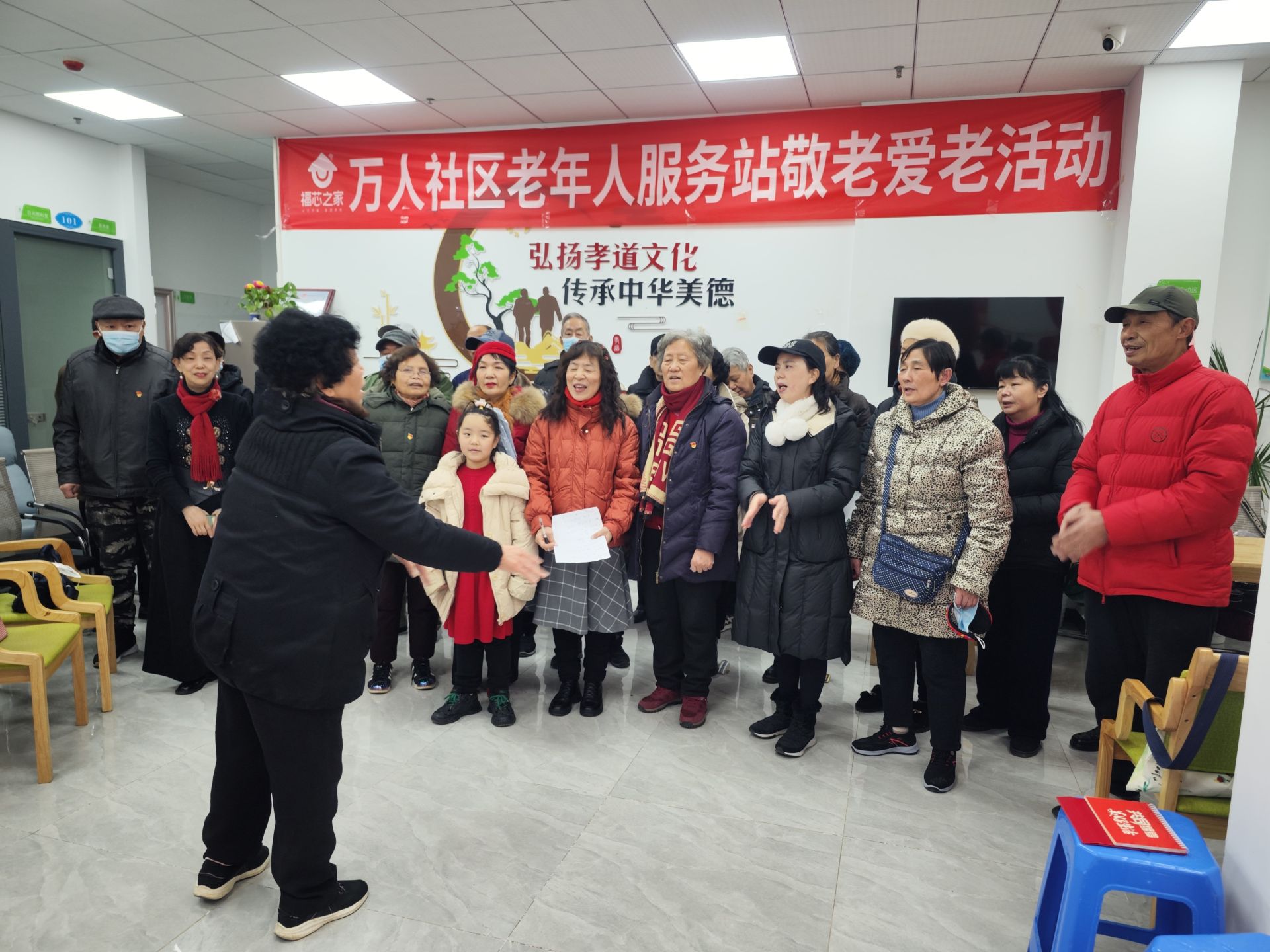 随后,我们举行了一场丰富多彩的新春联欢会活动,包挂乐器演奏、独唱、歌伴舞、合唱等多种形式的表演,联欢会在党员肖俊的葫芦丝独奏《欢乐中国年》拉开了帷幕,随后,有支部书记朱超英与委员辛良宇表演的舞蹈《最亲的人》,王桃香书记和党员丁福萍表演的舞蹈《画你》,党员孙幼琴独唱《青藏高原》,党员辛良宇与孙女的葫芦丝合奏《月光下的凤尾竹》,活动气氛在大家的欢呼声中越来越高,一些党员主动上台进行了表演,身穿着旧军装的党员郭小桥上台唱了一首激情澎湃的《中国梦》,年进八十的老支部委员李祖陶为大家唱了一首《横渡长江东流水》,退役老战士辛应钢为大家了唱了一首《我是一个兵》,几位老支部书记:谢玉环、易菊兰、罗名耀为大家唱了《红梅赞》和《风雨送春归》,党员杜传斌演唱了《海港》,最后,所有人员共同演唱了一首大合唱《社会主义好》。在活动结束之余,社区党委书记万红梅,为全体党员群众和家属送上新春祝福和新年寄语。