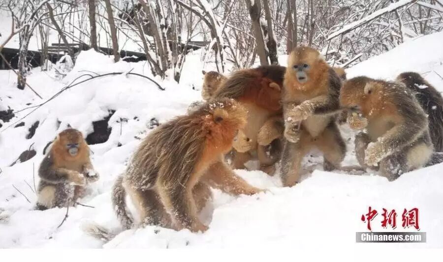 咱们湖北神农架的金丝猴都打起了雪仗
