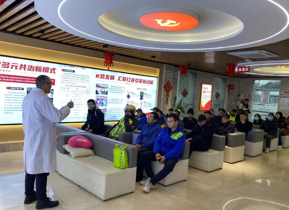 2月1日,武汉经开区沌阳街道金域蓝湾社区联合武汉协和医院西院、平台企业T3出行,在“车谷e站”网约车司机之家开展春节慰问暨爱心义诊活动,为30余名新就业群体提供科普讲座和爱心义诊等健康服务。