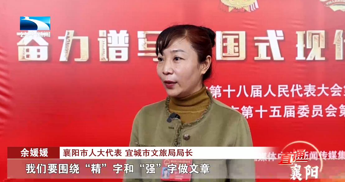 襄阳市人大代表、宜城市文旅局局长 余媛媛:“我们要围绕‘精’字和‘强’字做文章,把我们的文化之旅做得鲜活生动起来,同时我们还要持续打造和推荐美食品牌,讲好‘襄阳宴’故事,让我们的文化之旅变得回味无穷。”