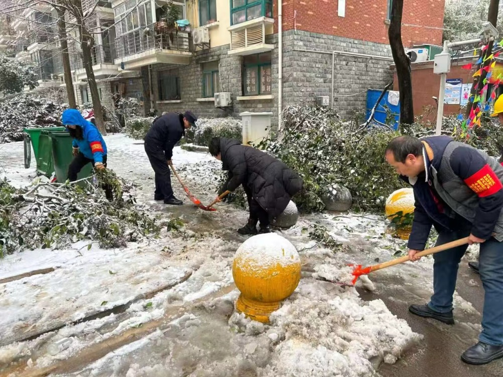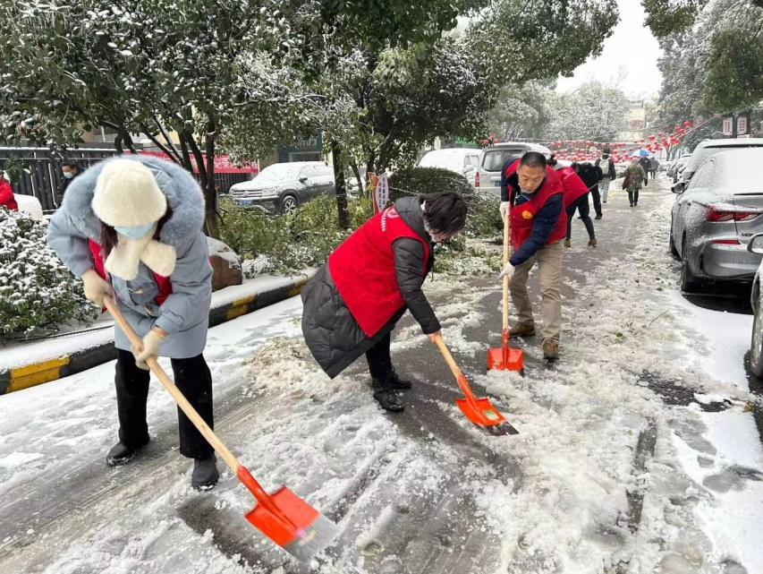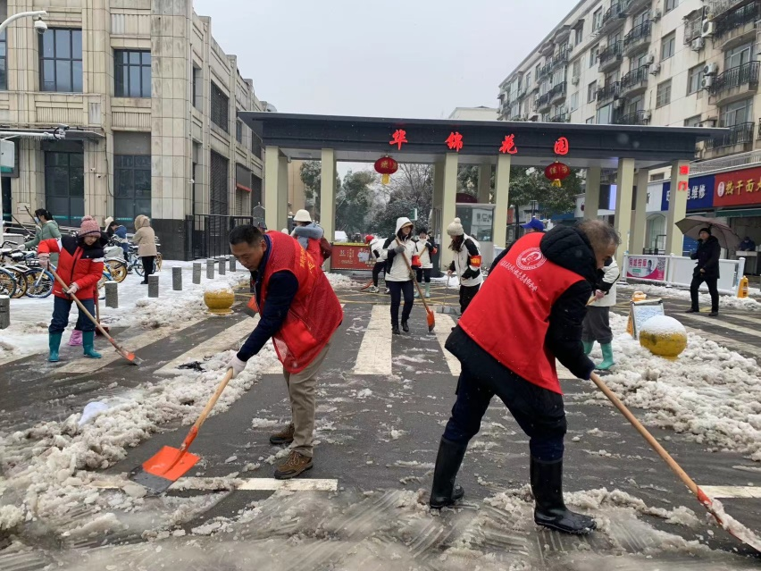2月4日,武汉立春首场“瑞雪”如期而至。赏心悦目的同时,却也为市民出行带来了诸多不便和安全隐患。清晨,武昌区南湖街道华锦社区工作人员紧急集合,闻“雪”而动,迎难而上,集结党员群众、社区工作者、民警、物业人员、下沉单位党员在辖区内铲雪、破冰、移树,用实际行动共同守护居民的出入平安。