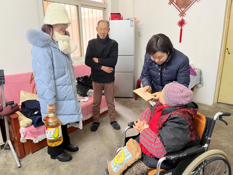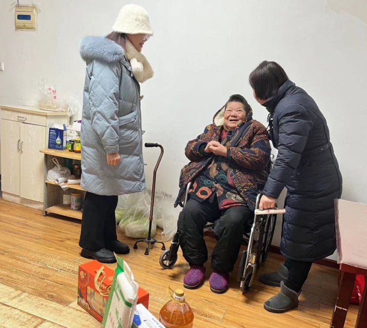 为了辖区困难群体的生活情况,社区工作人员、武汉住房公积金管理中心下沉党员带着慰问物资冒雪走访了数家困难群众,了解居民们的身体健康、取暖条件、物资需求等。来到残疾困难居民黄秀华家,了解生活情况,取暖情况,并一再提醒黄阿姨注意用电安全,下雪天注意保暖,出门防滑防摔。黄阿姨感动地说:“感谢社区总是记挂着我,我一定注意安全,我们大家都要过个好年!”