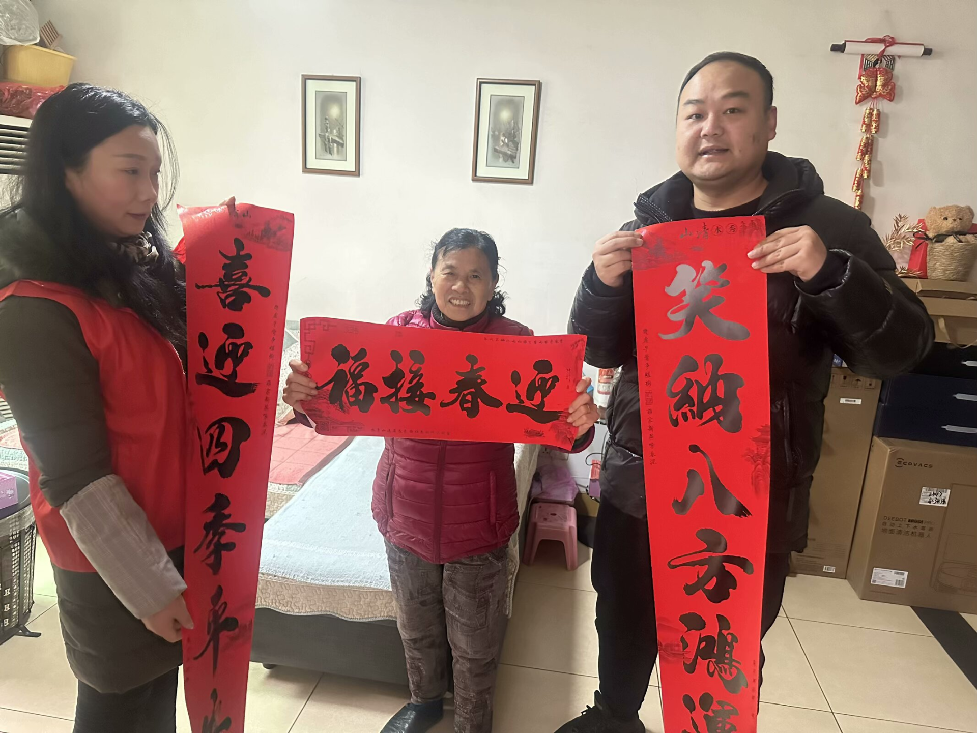 简易社区联合共建单位党员代表,深入辖区困难群众董爹爹家中进行走访慰问,为他送去米、油及精心准备的春联,尽力做好帮扶工作。工作人员还详细询问了老人的生活状况,认真听取并记录了他们的生活需求和困难,并叮嘱他注意防寒保暖和居家安全。“感谢社区和大家的关怀照顾,有社区在我感觉很温暖。”董爹爹高兴地说道。随后,工作人员又陆续走访了30多户独居老人和困难群众家庭,将米、油和春联送到他们手中,带给他们节日的问候和祝福。