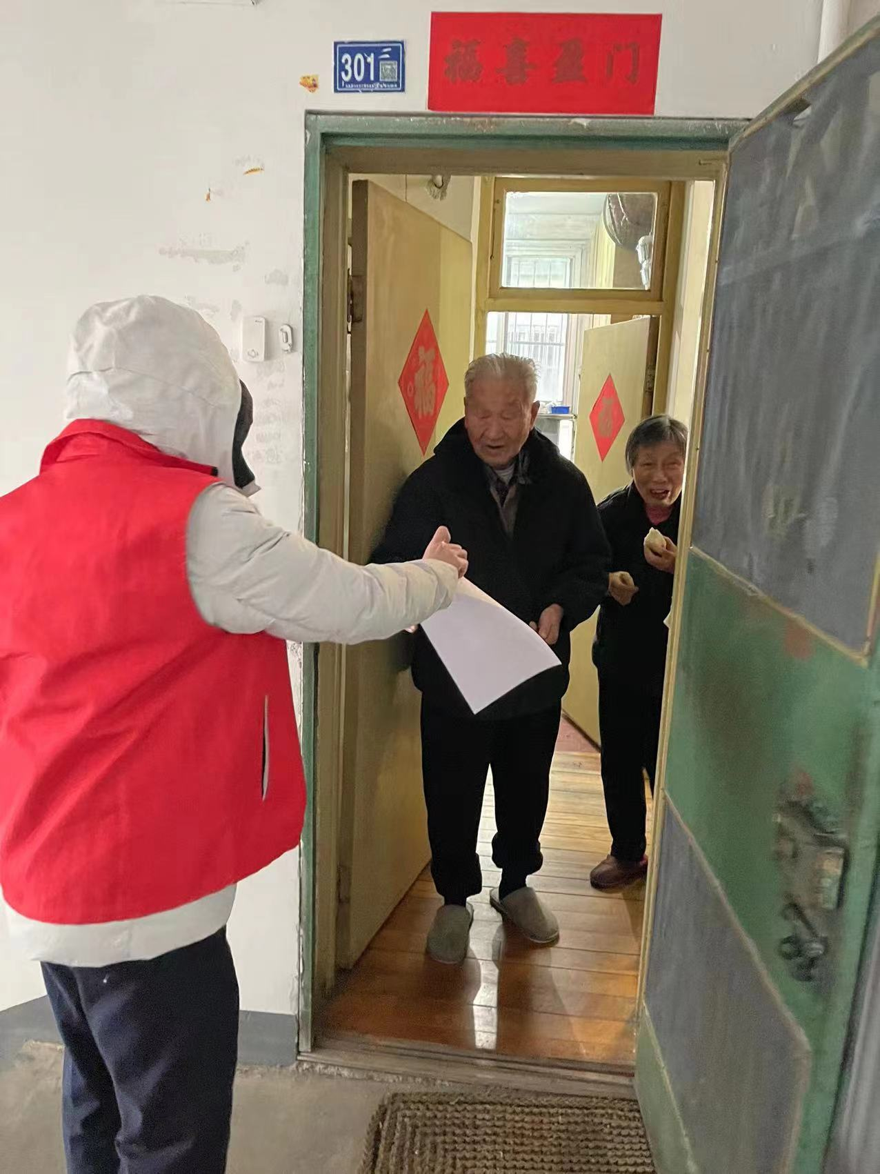 “红马甲寒冬敲门暖人心”科苑社区红枫叶志愿服务队的红马甲们在近期不断活跃在各个小区各个单元楼栋里,让小区在这个寒冷的冬天变的温情满满。“张阿姨您在家吗,最近天气寒冷,您在家里注意用火用电安全,外出注意多添加衣物,天冷路滑注意安全啦”每家每户都留下了我们小马甲温馨的提示。让他们感受到党和政府对居民群众的关爱和温暖。在行动中,“格格”们下格子走进居民家中,对困难家庭进行逐一走访,了解他们的生活状况和需求,并提供力所能及的帮助。