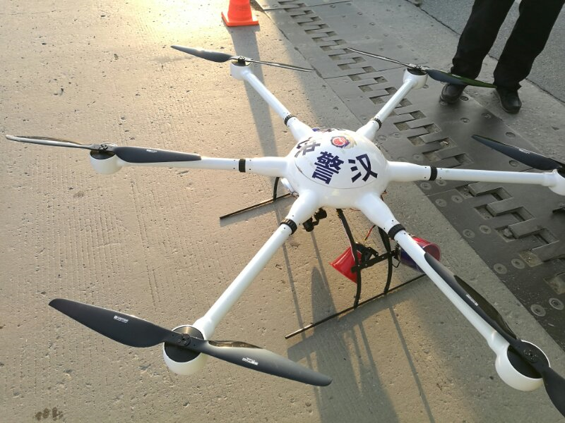 据东西湖区交通大队汉警快骑机动队民警姚磊介绍,这是该队与相关科研机构共同研发引进的新型多功能无人机。在过去无人机仅具有高空勘查功能的基础上,增加了强光警示、高音喊话、物品投掷等多种空地干预功能,高清摄像资料也能够实时传输回监控中心。该队使用新型无人机以来,有效提高处置交通拥堵、交通事故的工作效率。特别是在夜间,转变了过去不能使用无人机的状况,通过使用探照灯,既能够为现场提供照明,又能起到警示作用。下一步,该队还将在溺水、火灾等突发事件现场,使用无人机投掷救生圈、救生绳和灭火弹进行支援,最大限度地保障群众的生命财产安全。