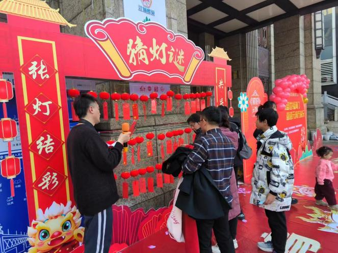 猜灯谜是一项具有深厚历史底蕴和丰富文化内涵的传统文化活动。它不仅寓意着吉祥如意、幸福安康、还具有启迪智慧、传承文化、增进交流和寓教于乐的多重价值。看完舞狮,人们来到灯谜区。有人在欣赏着一个个火红的灯笼,有人在聚精会神的阅读灯笼下挂着的谜面,有人在互相讨论,也有人一下就猜出答案,活动现场欢声笑语此起彼伏。一百多个灯笼们,着实让大家体验了一场“头脑风暴”。猜灯谜不仅增添了节日的气氛,还表达了古代汉族劳动人民的智慧和对美好生活的向往。