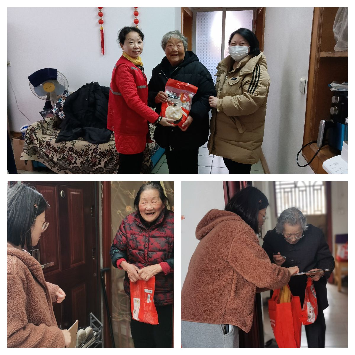 活动现场,社区工作人员与志愿者们来到独居老人、空巢老人家中,与老人进行亲切的交谈,细心询问他们的身体和生活情况,叮嘱他们遇到困难一定要与社区联系,并向他们致以最衷心的节日祝福。最近天气多变,降温、冻雨将至,社区工作人员提醒老人们注意保暖,出行注意安全等事项,同时将一份份甜甜糯糯的汤圆送到他们手上。