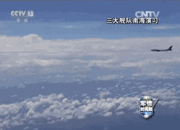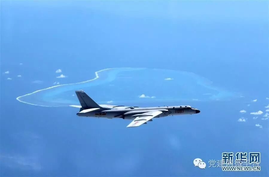 空军轰-6K飞机在黄岩岛等岛礁附近空域巡航。