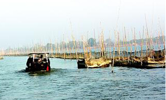 眼前所见,是浑浊泛绿的湖水,密密匝匝的竹竿和纵横交错的围网,将原本一望无际的湖面分割成一块块相对独立的水域。水上,看不到一只水鸟。虽机声突突,却感受不到一座湖泊应有的生机和灵气。