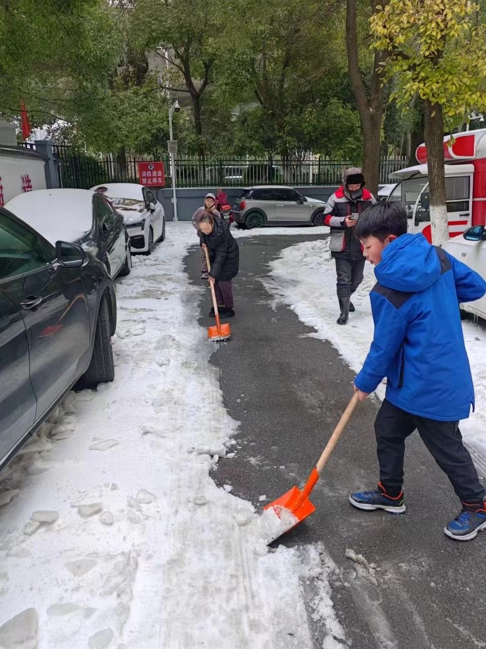 党员志愿者的清障工作,吸引了部分群众加入其中,金江公寓学生小赵正值寒假,看到志愿者们忙碌的身影,也拿起了铲子开始帮忙,“学校鼓励我们多参加志愿服务,这是我第一次参加这样的志愿服务活动。看见小区的爷爷奶奶平稳地走在我扫出来的道路上,我觉得挺骄傲的!