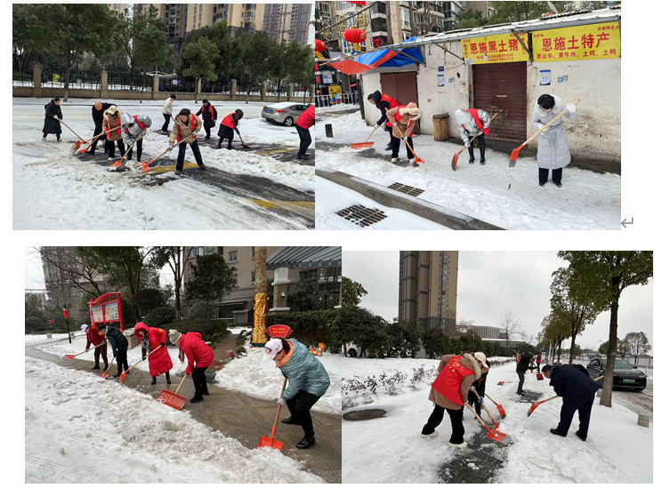 近日新一轮低温雨雪冰冻天气来袭,为有力保障辖区居民群众正常生活,武汉市汉阳区鹦鹉街道杨泗社区以雪为令、闻令而动,组织区税务局、鹦鹉排水站、社区全体工作人员、物业工作人员、志愿者在辖区继续开展融雪防冻工作,保路通、送温暖。