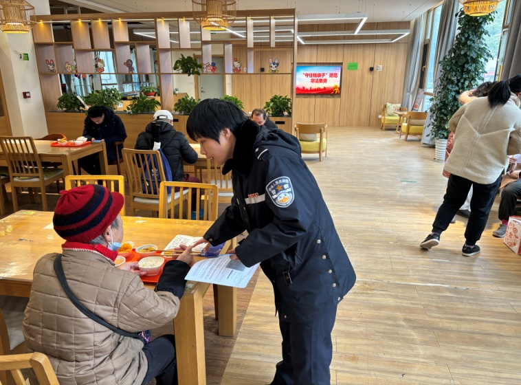 随着我国老龄化程度的不断加深,养老服务需求日益增长。然而,一些不法分子却利用这一机会,以养老服务为名进行非法集资活动,给老年人的财产安全和社会稳定带来了严重威胁。为了加强广大居民反诈骗意识,提高老年群体辨别诈骗的能力,近日,南湖街道宝安社区联合社区民警王警官在爱照护养老服务中心开展远离养老诈骗宣传活动,提醒大家防范养老服务领域非法集资的风险。