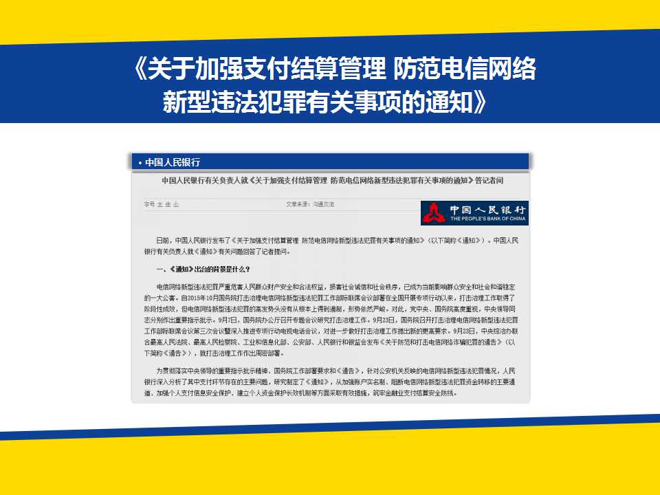 今年的9月30日,央行发布了《关于加强支付结算管理 防范电信网络新型违法犯罪有关事项的通知》,在这个通知当中,做了一些新的规定,执行日期就是从今天开始,因此我们有必要了解一下这些规定。