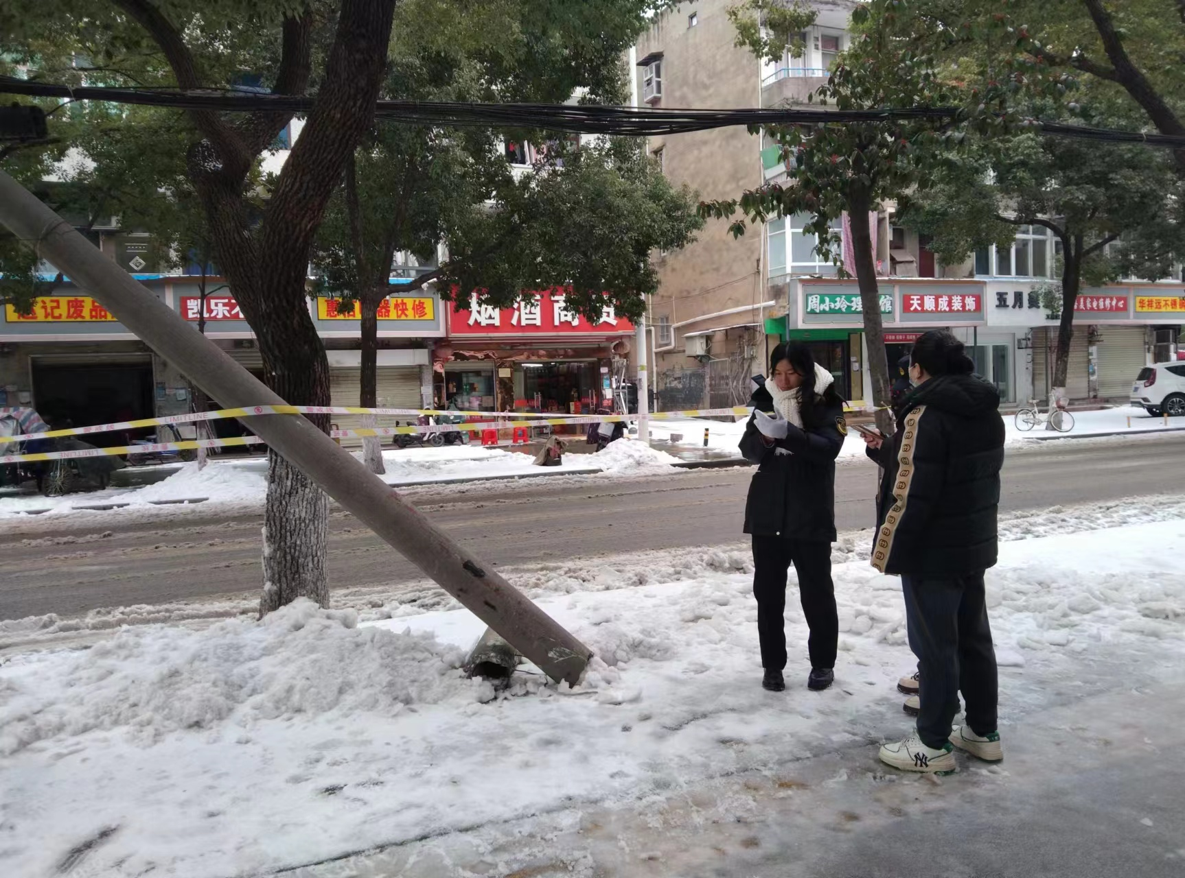 “多亏了社区及时处置断裂的电线杆,万一出现意外,后果不堪设想.....”,吴兴社区为群众解难的行为受到了在场居民的一致称赞。2月23日,吴兴社区网格员刘巧娴在辖区铲雪除冰中发现三秀路一处电线杆断裂,仅靠两根钢丝牵连,倾倒在一捆电缆线上。该地段过往车辆行人较多,加上冰冻雨雪天气,一旦完全断裂,将严重危及居民和行人的生命财产安全,安全隐患极大。