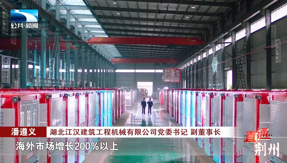 湖北江汉建筑工程机械有限公司党委书记、副董事长 潘遵义:“超过行业增长20%以上,其中国内市场现在稳住有升,海外市场增长200%以上。”