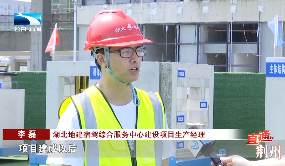 湖北地建宿驾综合服务中心建设项目生产经理 李磊:“项目建成以后,是用于服务周边的智能家电、新能源及汽车零部件、电子信息产业园的一站式消费的多功能的服务场所。”