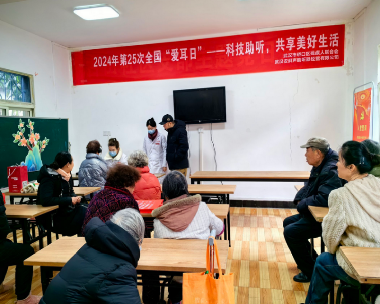 为进一步宣传和普及爱耳护耳知识,指导老年人养成健康用耳习惯,减少耳聋发生,在第二十五次“全国爱耳日”即将来临之时,硚口区古田街道古田社区联合武汉安湃声助听器经营有限公司、硚口区残疾人联合会,于2月29日上午,在古田社区开展以“科技助听 共享美好生活”为主题的“全国爱耳日”活动,邀请了辖区残疾人、社区老年人参加此次活动。