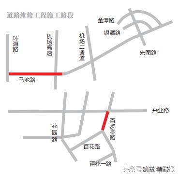 9日起,马池路将进行道路维修工程施工,市民通行施工路段,可绕行宏图路、金潭路、银潭路等相关道路。百步亭路的兴业路至百花路段,排水改造工程已于上周末开工,市民出行的车辆需绕行百步亭花园路、百花路、百花一路等周边道路。
