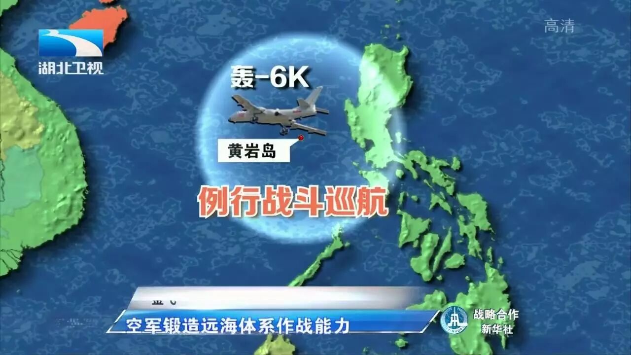 这次南海战巡,空军出动轰-6K飞机赴黄岩岛等岛礁附近空域进行了巡航。轰-6K和歼击机、侦察机、空中加油机等遂行战巡任务,以空中侦察、对抗空战和岛礁巡航为主要样式组织行动,达成了战斗巡航目的。