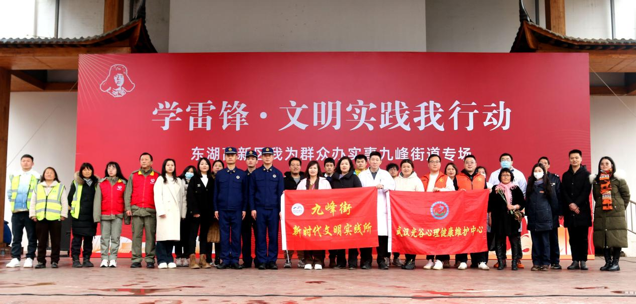 雷锋精神是中华民族传统美德的一种积淀,是一种随着时代进步而不断发展的民族精神。在第61个学雷锋纪念日当天,东湖高新区九峰街道开展“学雷锋·文明实践我行动”我为群众办实事文明实践活动,用实际行动践行雷锋精神,传承文明、弘扬美德。九峰街道党工委委员、办事处副主任蒋静出席活动并致辞。现场设有12个服务点位,为辖区居民提供健康义诊、法律咨询、安全用电、垃圾分类、便民集市等多项志愿服务,其中包括“非遗糖画”“文明套圈”等特色展区,旨在为九峰街道王店社区慈善基金宣传推介和募集捐款,通过撬动公益“小基金”,助力社区“大治理”。
