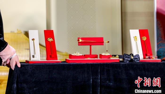 湖北省博物馆常设展览“梁庄王珍藏——郑和时代的瑰宝”,因展出文物金玉满堂被观众形容为“泼天的富贵”,走红社交媒体。以该展首饰及金器为原型打造的“一绾青丝”系列文创8日在该馆正式推出,展现中国古代工艺与域外文明交融并蓄之美。