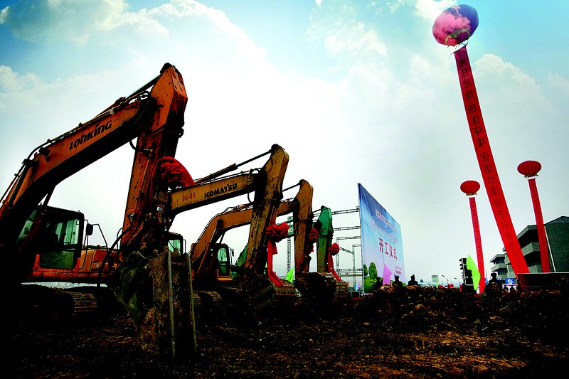 座谈会后,赵金河一行实地查看了胡家湾等施工现场。