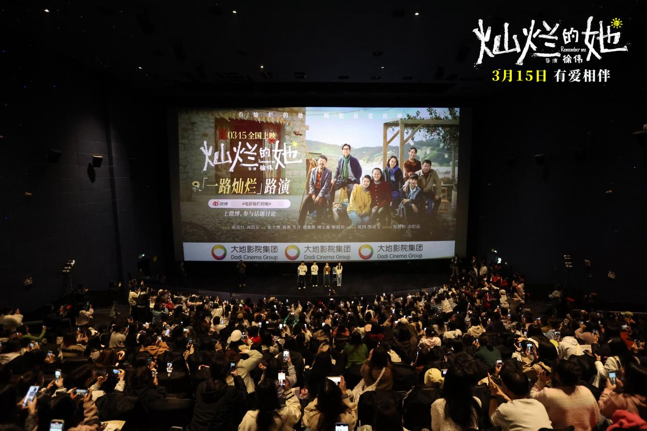 据长江云新闻了解,电影《灿烂的她》由徐伟执导,张莉编剧,惠英红、刘浩存领衔主演,张子贤、刘欢、苇青、刘奕铁、胡宝森、廖银玥主演,葛四、鄂靖文特别出演,荣梓杉、余皑磊友情出演。由众合千澄影业(无锡)有限公司、上海淘票票影视文化有限公司出品,上海众合千澄影视文化传媒有限公司、朱瓷影业(上海)有限公司、北京千朗文化传媒有限公司、北京众合千澄影视文化传媒有限公司联合出品。影片于3月15日全国上映,全国路演正在火热进行中。