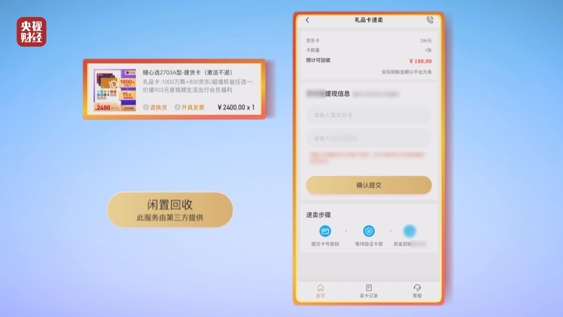 投诉人 小李:它给你提供礼品卡,然后又给你提供变现的场所,说白了,也就是缺钱才会去这个场所购买这个东西,这个就是贷款。