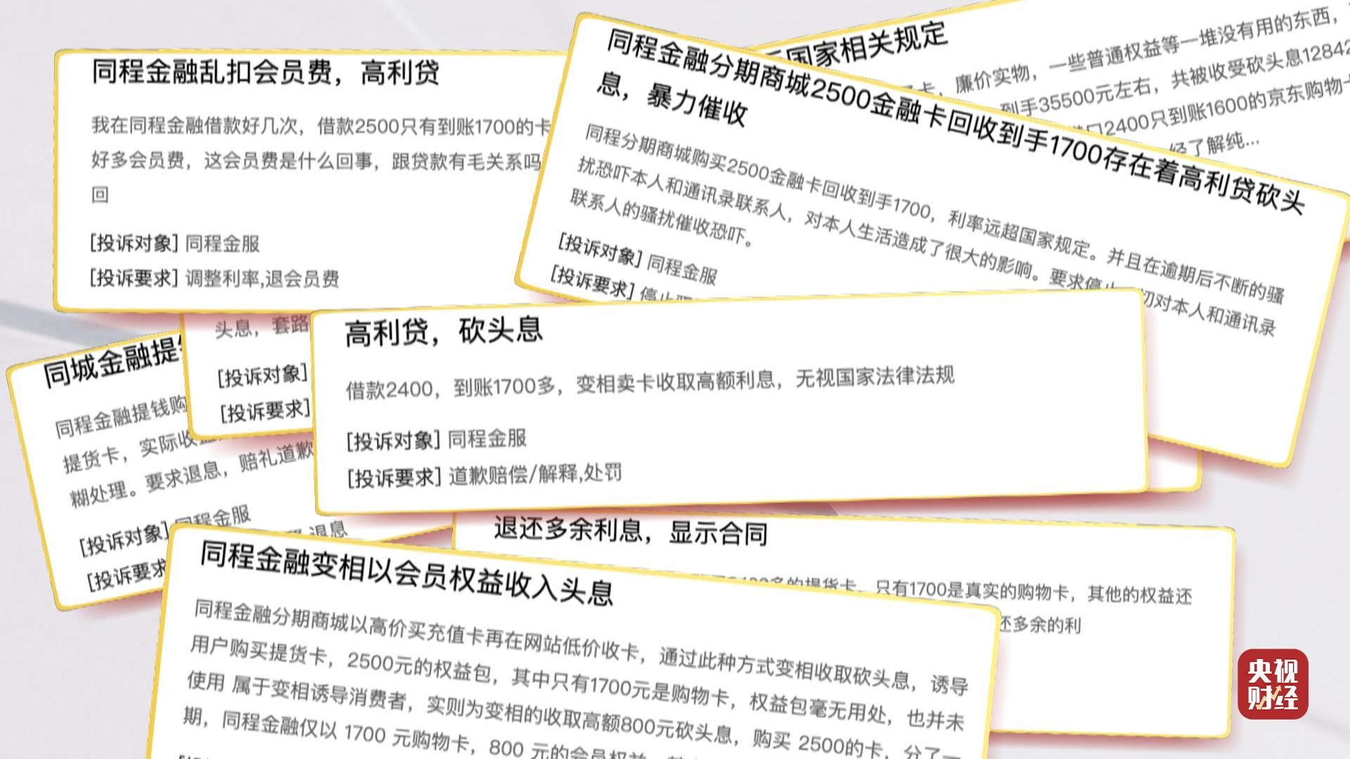 很多借钱的消费者由于难堪,并不愿意直面3·15记者的镜头,更多的人只能在网络上,展开对同程金融App这款变相高利贷的礼包产品进行投诉。仅在一家投诉平台上,关于同程金融的投诉就高达36755条,其中有相当一部分是投诉这类礼包贷款产品的。