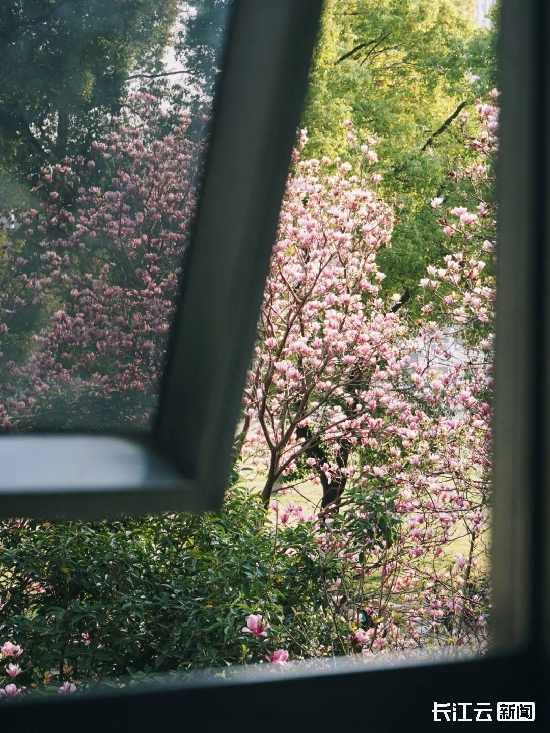 “庭院深沉坠海红,玉兰树下坐春风”,对最美森林大学来说,玉兰是传递春日来信的使者,她将华科大装点成烂漫的花海,淡粉、霞红、雪白,花瓣在阳光下舒展,绽放出清雅幽香的生机盎然。近期,华中科技大学西十二的“玉兰花教室”,悄悄晋升为校内顶流,坐在这里的窗边翻翻书,既可以与明媚春光拥抱,又能在眼底鼻尖尽收这片美好。