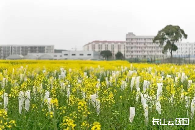顺着华农图书馆往南走,很容易找到华中科技大学的“现代农业科技实验基地”。油菜花是这儿的科研主角,也是春季的宠儿,花海泱泱。整个试验田总面积1600亩,油菜花在阳光下肆意开放,风吹过,金黄色的浪,淡淡的略带酸味的花气弥漫。