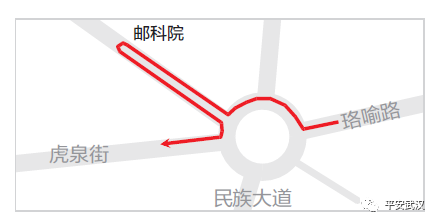 专家建议:近期可提高交织段通行能力,在珞喻路(西)与虎泉街之间用护栏分隔出一条右转车道(前期用水马试验),前往虎泉街的车辆在珞喻路邮科院调头。此外,及时清理民族大道转盘出口处的违停车辆。远期打通拥军路,清理路侧违停车辆,经拥军路绕行。