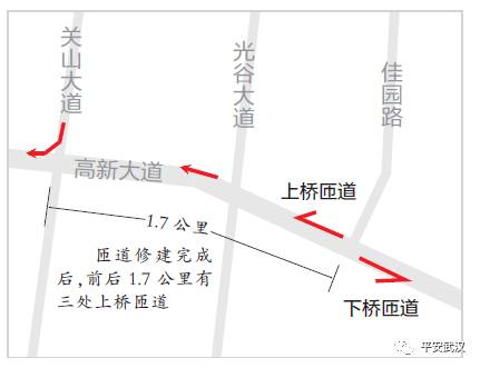 封闭高新四路东北侧匝道,车辆绕行黄龙山东路、黄龙山南路,封闭西南侧三环临时出入口。通过简化光谷立交地面交通,缓解光谷大道至高新四路、金融港二路路口的交通拥堵。
