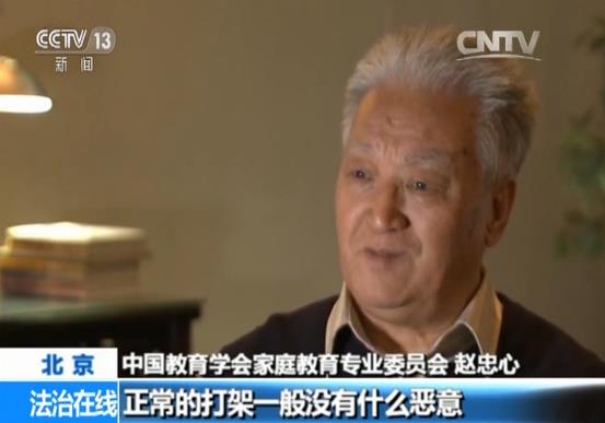 中国教育学会家庭教育专业委员会 赵忠心:正常的打架一般是没有什么恶意,是在一些具体事件上发生了分歧,处理问题能力比较差,就采取动胳膊动拳头打起来来了,打完了之后很可能他们很快又成为朋友。而欺凌和暴力,不是一种普通的打架,他是恶性的、恶意的、出发点是以强凌弱,以大欺小来欺压别人,来凌辱别人,从中得到一些快感。