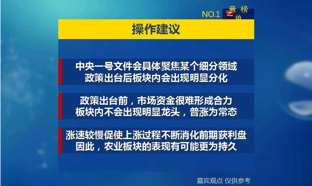 操作建议:中央一号文件会具体聚焦某个细分领域,政策出台后板块内会出现明显分化政策出台前,市场资金很难形成合力。