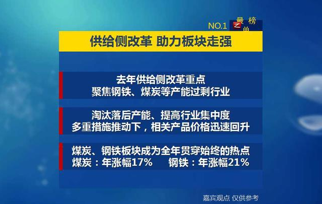 供给侧改革助力板块走强,去年供给侧改革重点,聚焦钢铁、煤炭等产能过剩行业,淘汰落后产能、提高行业集中度。多重措施推动下,相关产品价格迅速回升。煤炭、钢铁板块成为全年贯穿始终的热点。