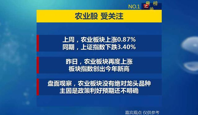 板块内不会出现明显龙头,普涨为常态,涨速较慢促使上涨过程不断消化前期获利盘,因此,农业板块的表现有可能更为持久。