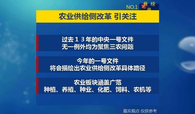 农业供给侧改革引关注,过去13年的中央一号文件,无一例外均为聚焦三农问题。今年的一号文件 将会描绘出农业供给侧改革具体路径。农业板块涵盖广范,包括种植、养殖、种业、化肥、饲料、农机等。