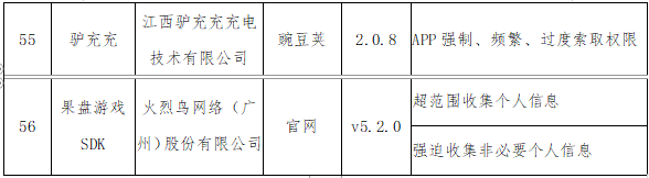 工业和信息化部高度重视用户权益保护工作,依据《个人信息保护法》《网络安全法》《电信条例》《电信和互联网用户个人信息保护规定》等法律法规,持续开展APP侵害用户权益专项整治行动。近期,我部组织第三方检测机构对群众关注的实用工具、休闲娱乐及短视频等移动互联网应用程序(APP)及第三方软件开发工具包(SDK)进行检查。发现56款APP(SDK)存在侵害用户权益行为(详见附件),现予以通报。