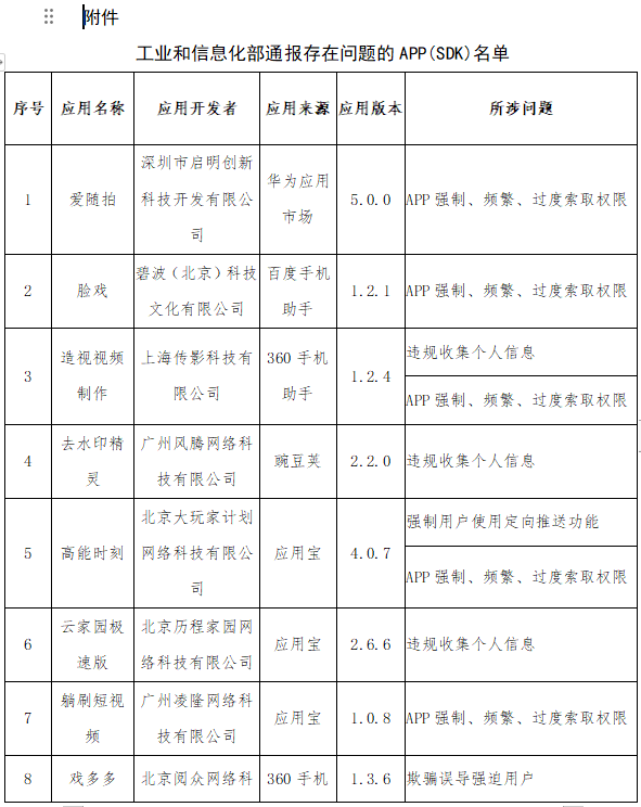 附件:工业和信息化部通报存在问题的APP(SDK)名单.docx