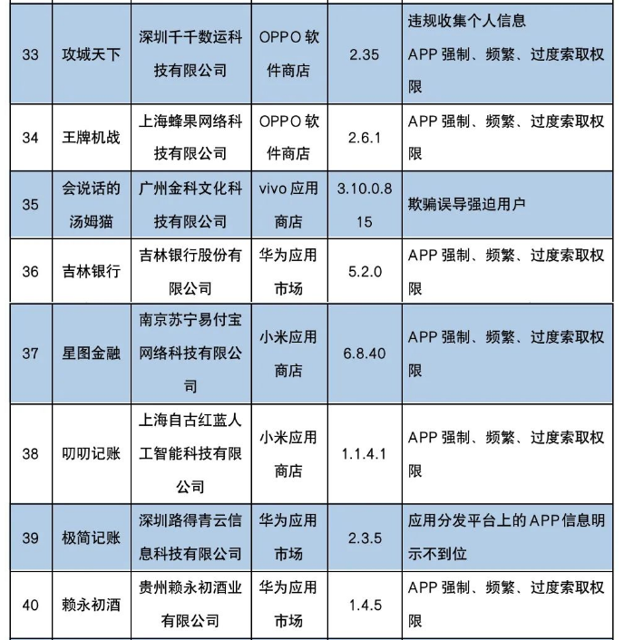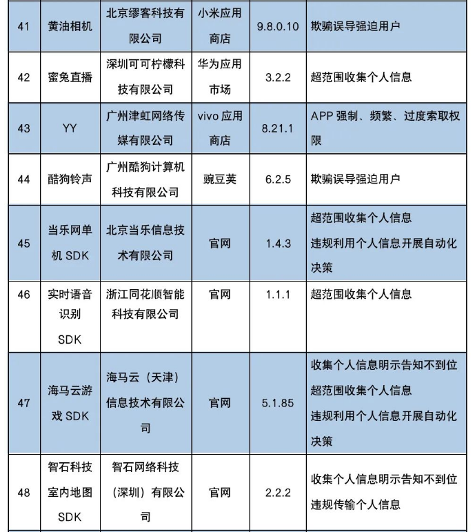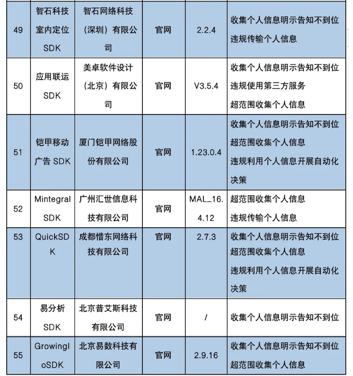 关于侵害用户权益行为的APP(SDK)通报