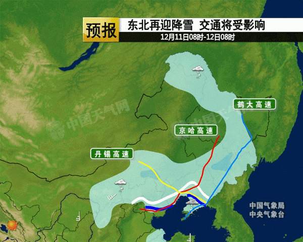 具体来看,21日20时至22日20时,东北地区东部和南部、华北东南部、黄淮东北部等地有小到中雪或雨夹雪,其中,黑龙江东南部、吉林东部、辽宁东北部等地的部分地区大到暴雪;黄淮东部、江淮东部、江南中东部等地有小到中雨或阵雨。
