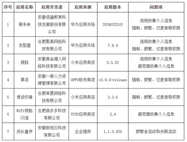 针对2024年第1批次整改不到位的APP,安徽省通信管理局已对相关APP予以公开通报,并要求其限期整改。截至目前,尚有7款APP逾期未完成整改(详见附表)。安徽省通信管理局现组织对上述APP进行下架,相关应用商店应在本通报发出后,立即对名单中的应用软件进行下架处理。